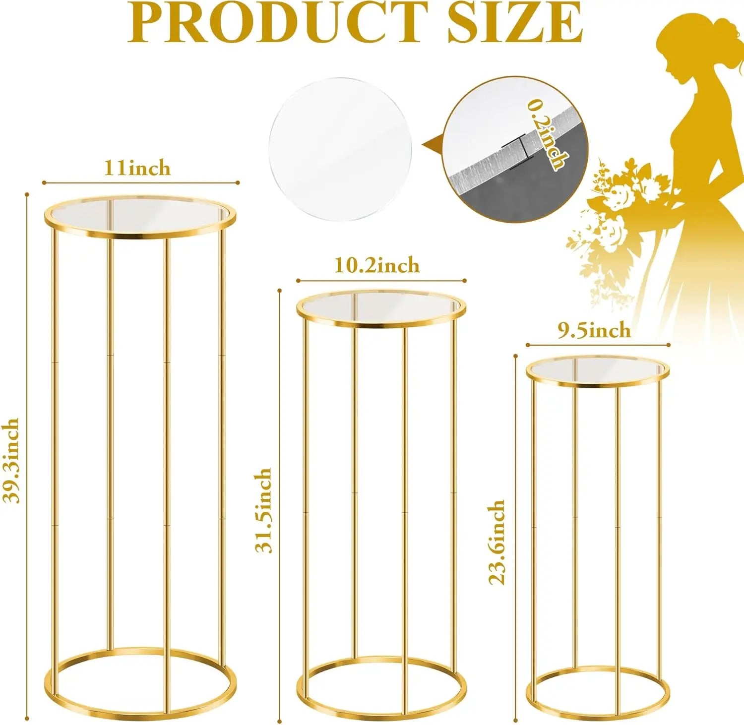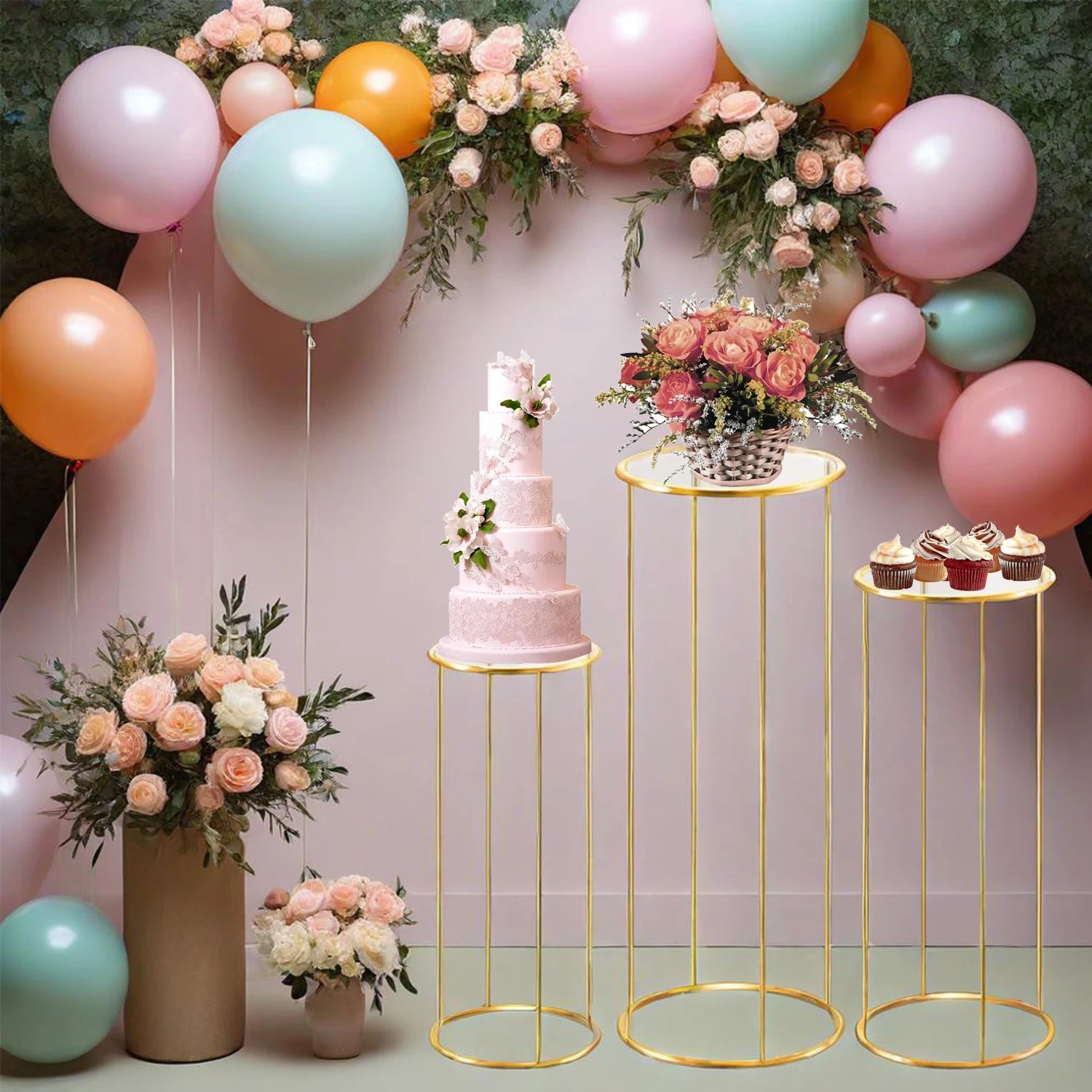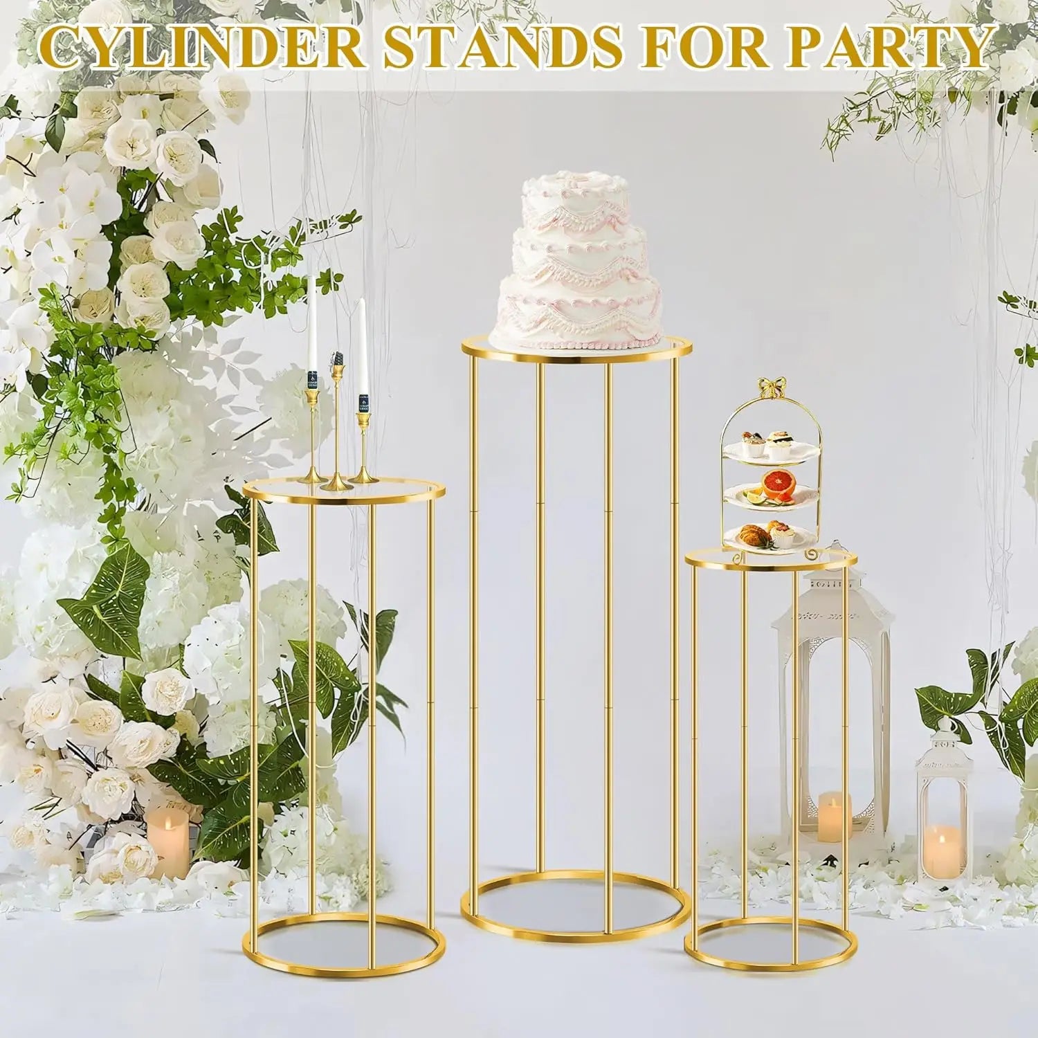 3pcs Cylinder Plant Stand Large Metal Gold Cylindrical Plant Stand Display Pillars for Party Flowers Birthday Wedding Decor Supp