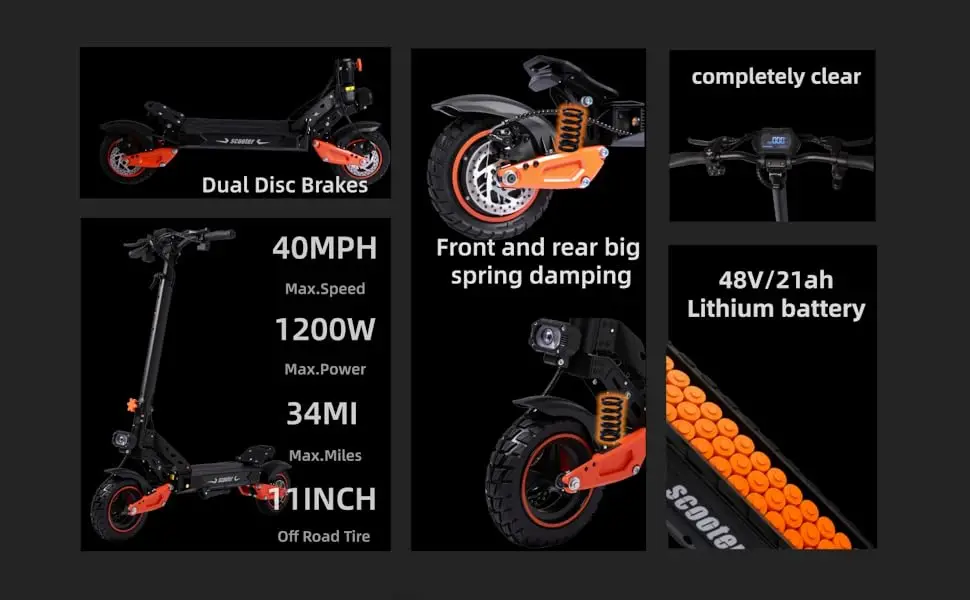 40MPH Top Speed,K11 Adult 1200W Electric Scooter,48V21AH Battery., 11-inch Off-Road Tires Sport Folding EScooter For Commuting