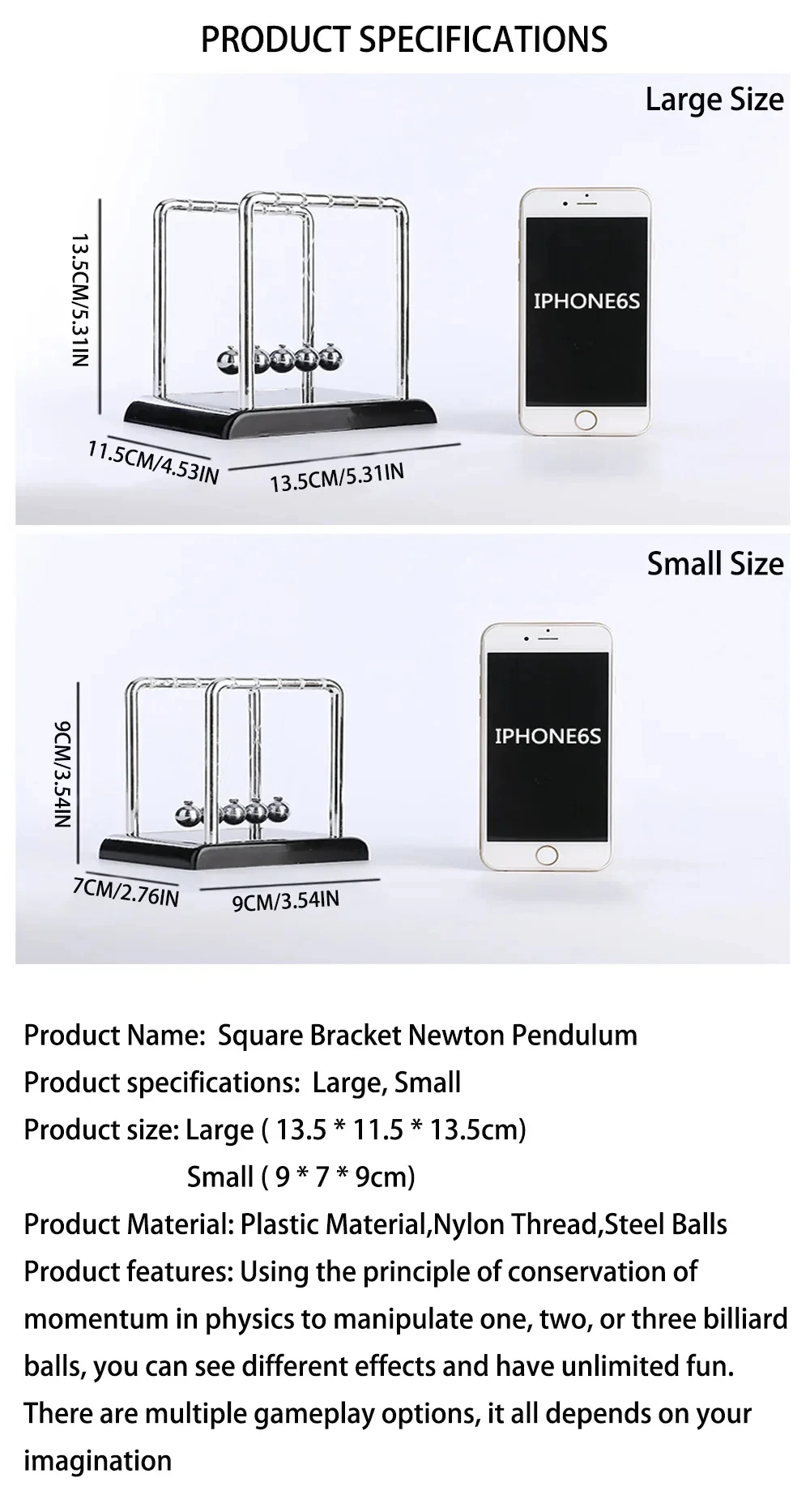 Cradle Balance Steel Ball Desk Toy Gift Gravity Pendulum Teaching Supplies Physics Science Metal Home Office Decoration