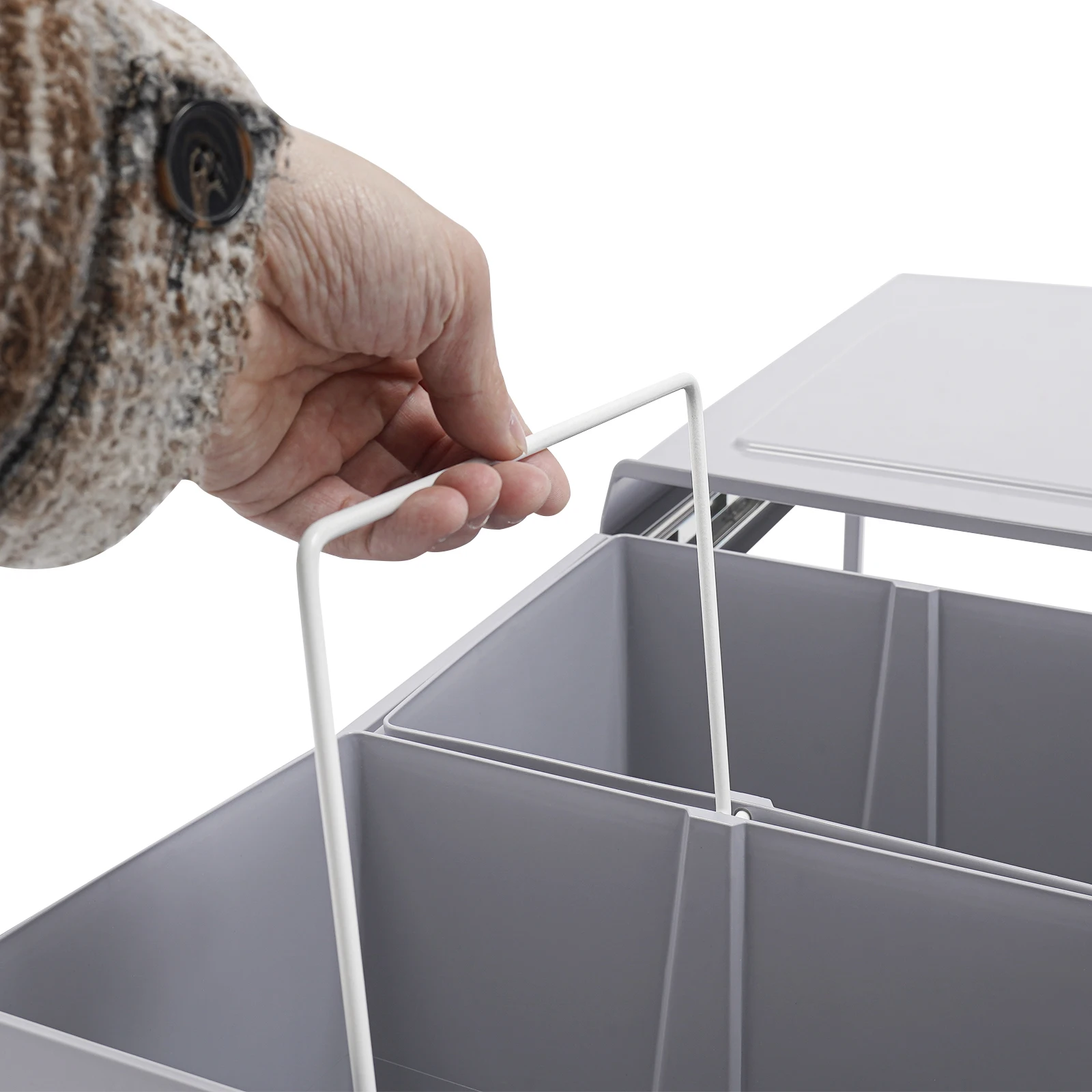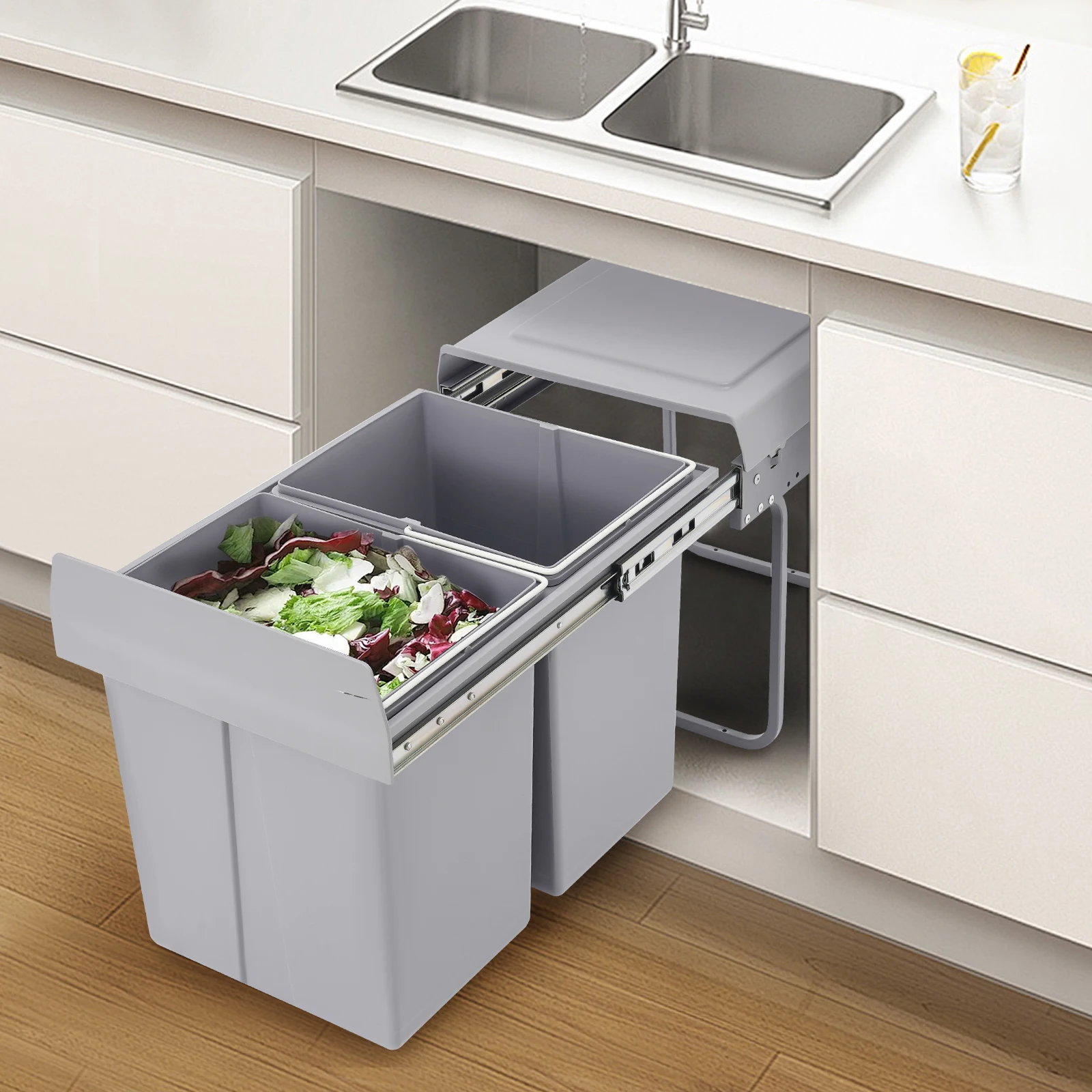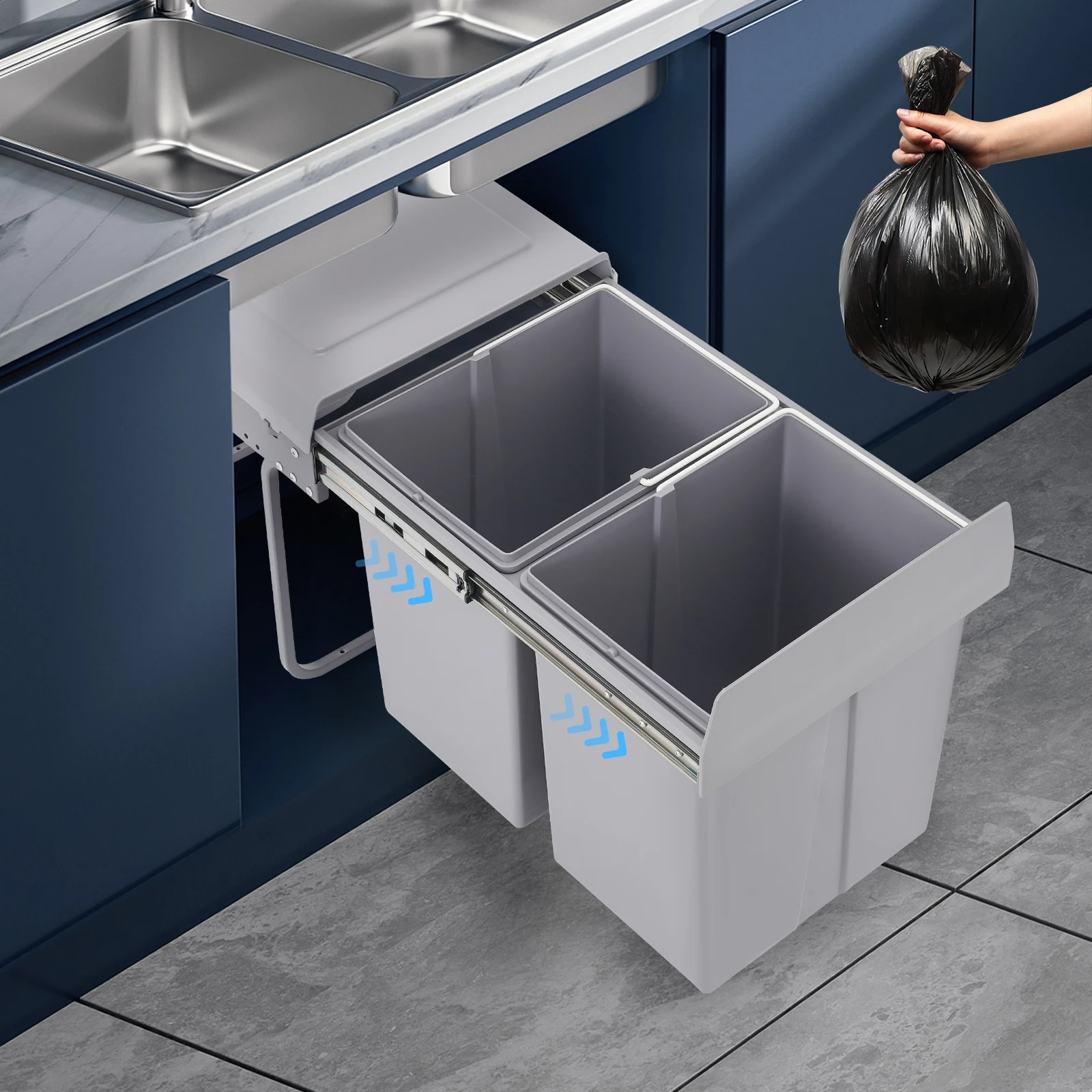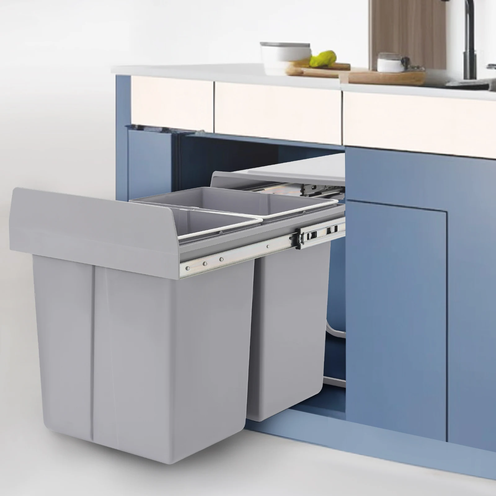 Maintain Kitchen Hygiene: Placing trash cans inside cabinets can effectively prevent ground pollution caused by scattered garbage and maintain a clean and hygienic kitchen environment. Moreover, the covered design helps to control the spread of odors. The dual bucket configuration allows users to easily achieve garbage classification, such as separating recyclable and non-recyclable materials, which helps with environmental protection and resource recycling.