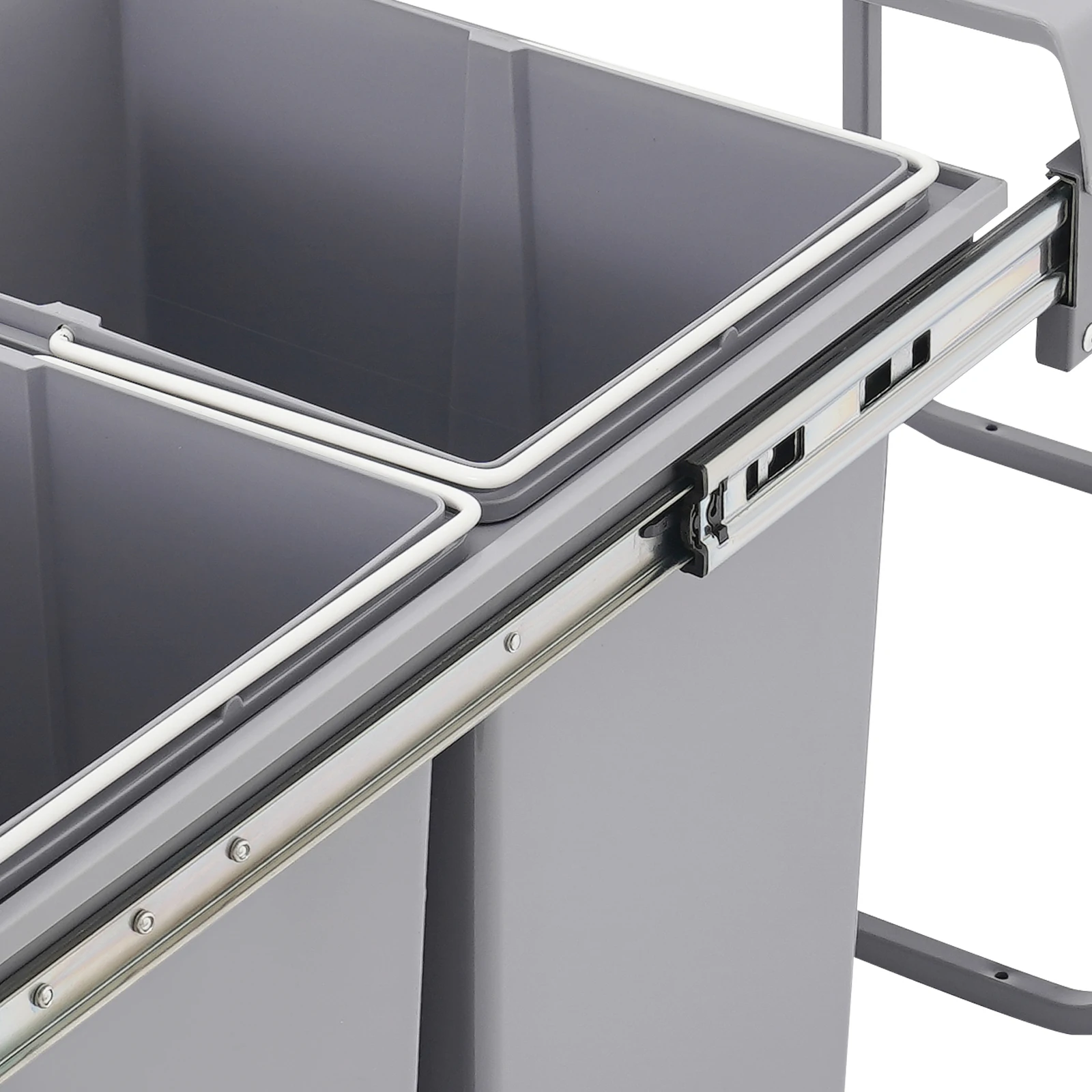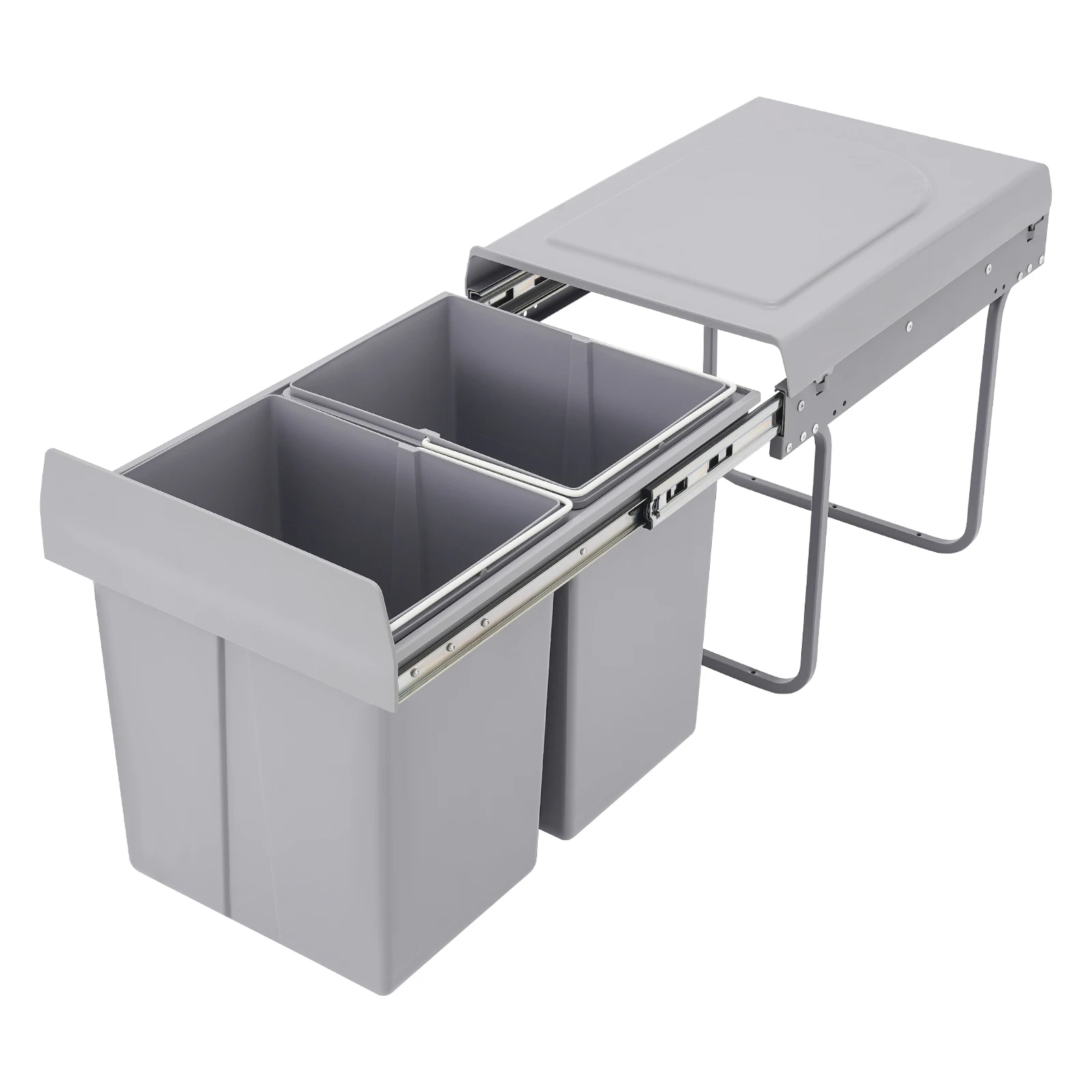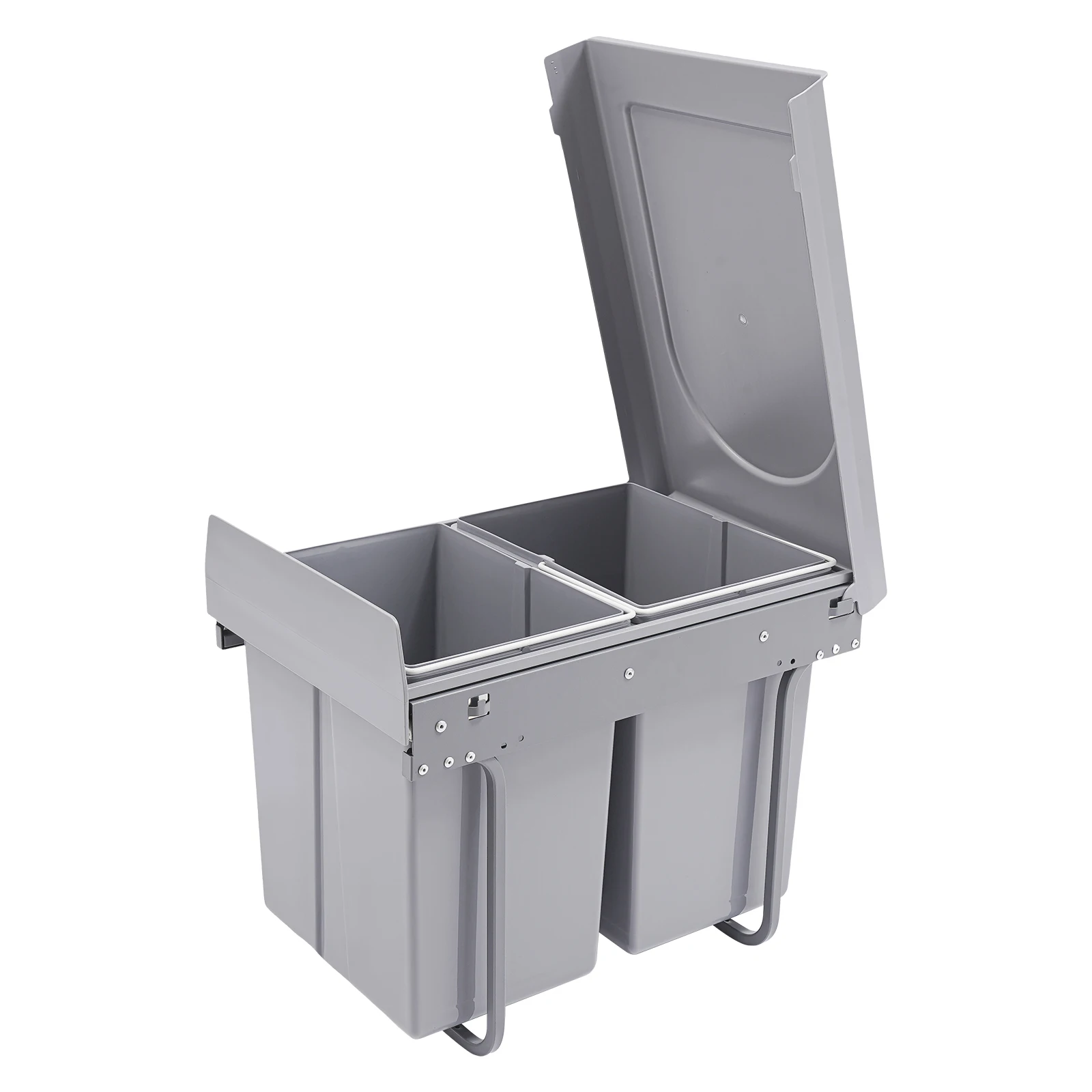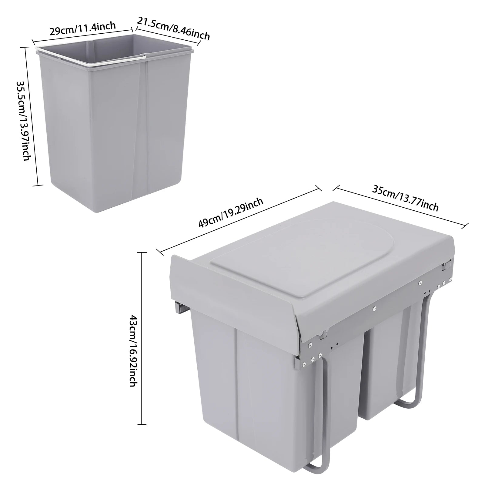 Maintain Kitchen Hygiene: Placing trash cans inside cabinets can effectively prevent ground pollution caused by scattered garbage and maintain a clean and hygienic kitchen environment. Moreover, the covered design helps to control the spread of odors. The dual bucket configuration allows users to easily achieve garbage classification, such as separating recyclable and non-recyclable materials, which helps with environmental protection and resource recycling.