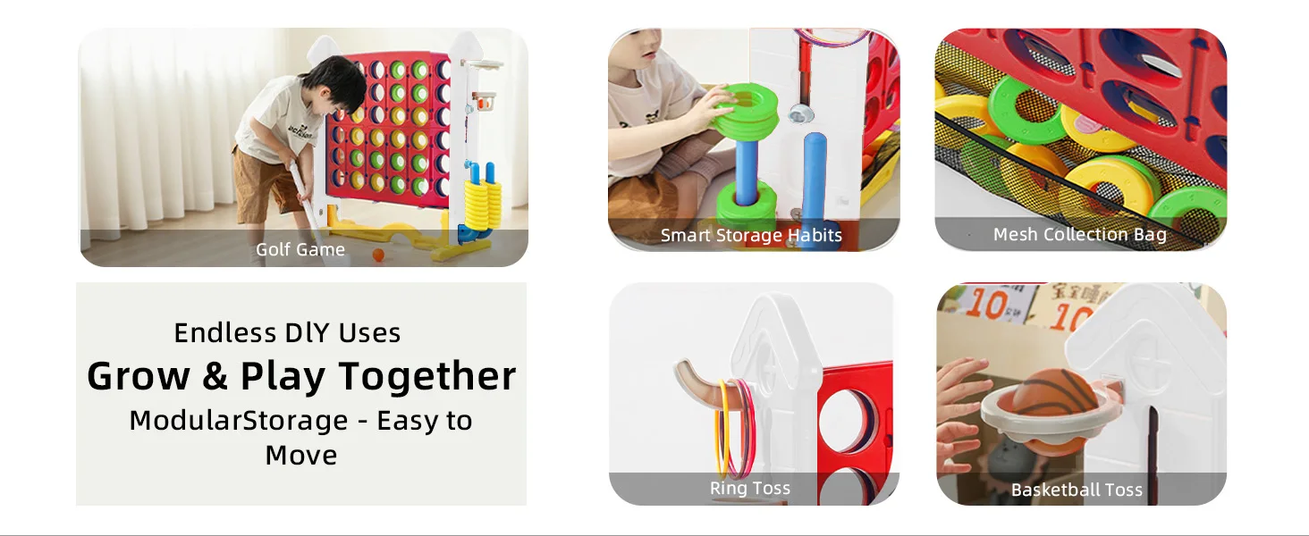 Giant Connect Four Game Set - Height-Adjustable Giant Yard Game, 4-Row Large Floor Connect 4 Game for Backyard & Patio, Family O