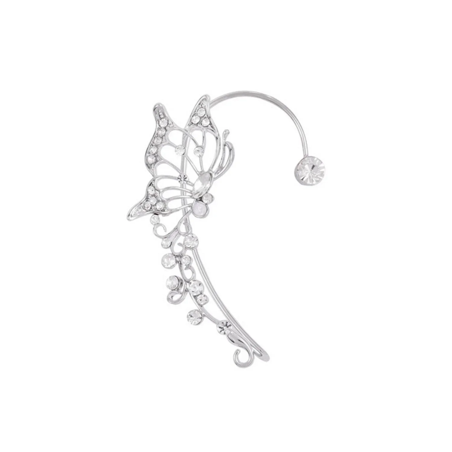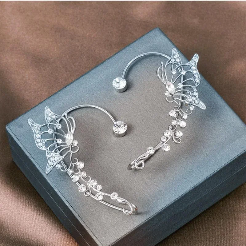 Korean Elf Butterfly Ear Cuff Without Piercing Clip Earrings for Women Elegant Sparkling Zircon Crystal Ear Clip Wedding Jewelry