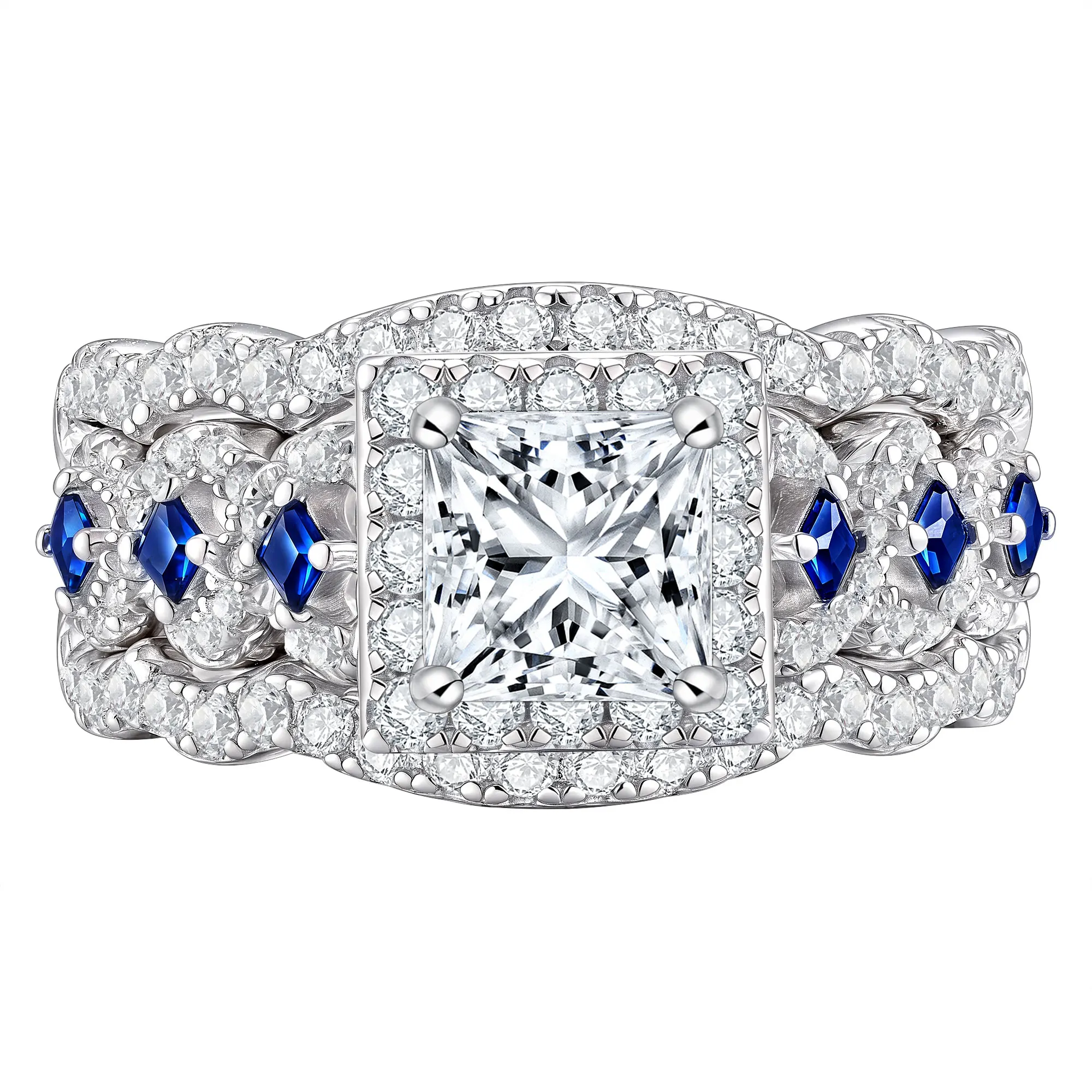 Newshe 3 Pcs Solid 925 Sterling Silver Certified Moissanite Wedding Rings Set for Women 6.5mm Princess Cut Luxury Jewelry