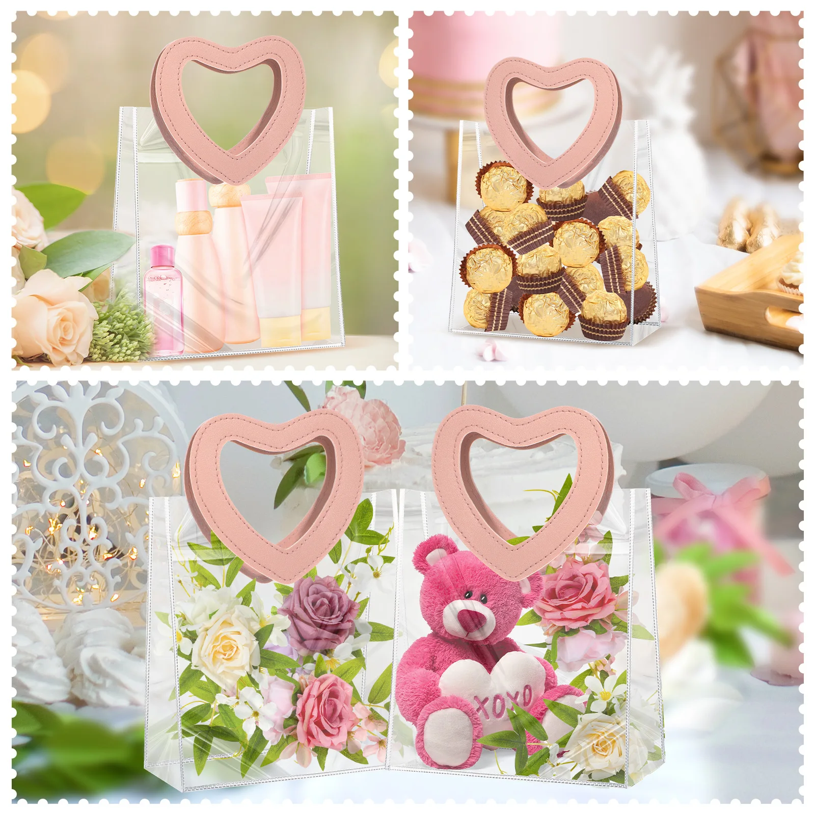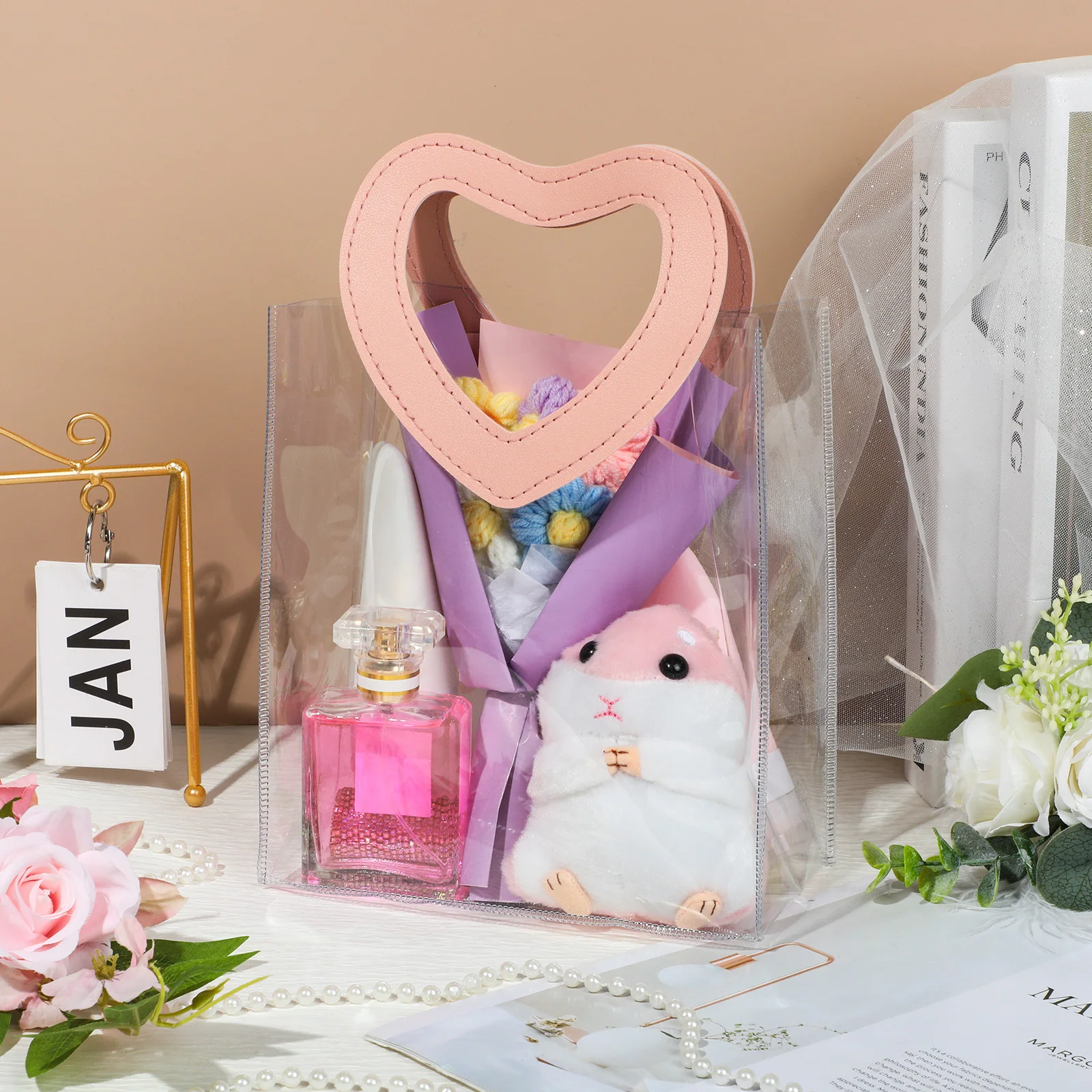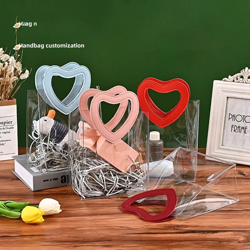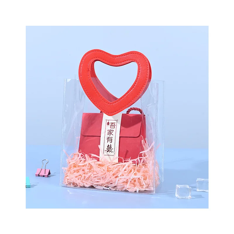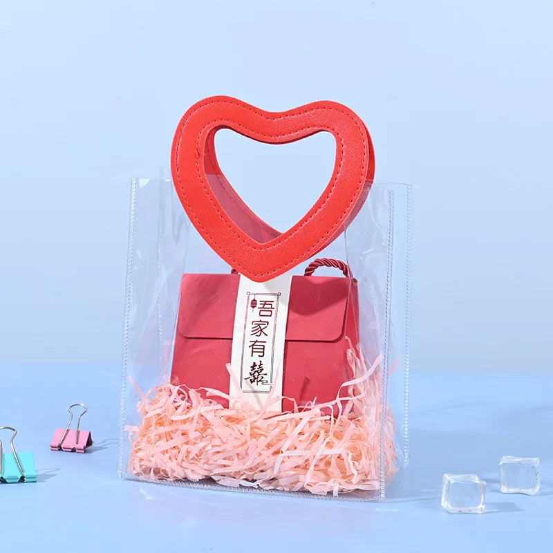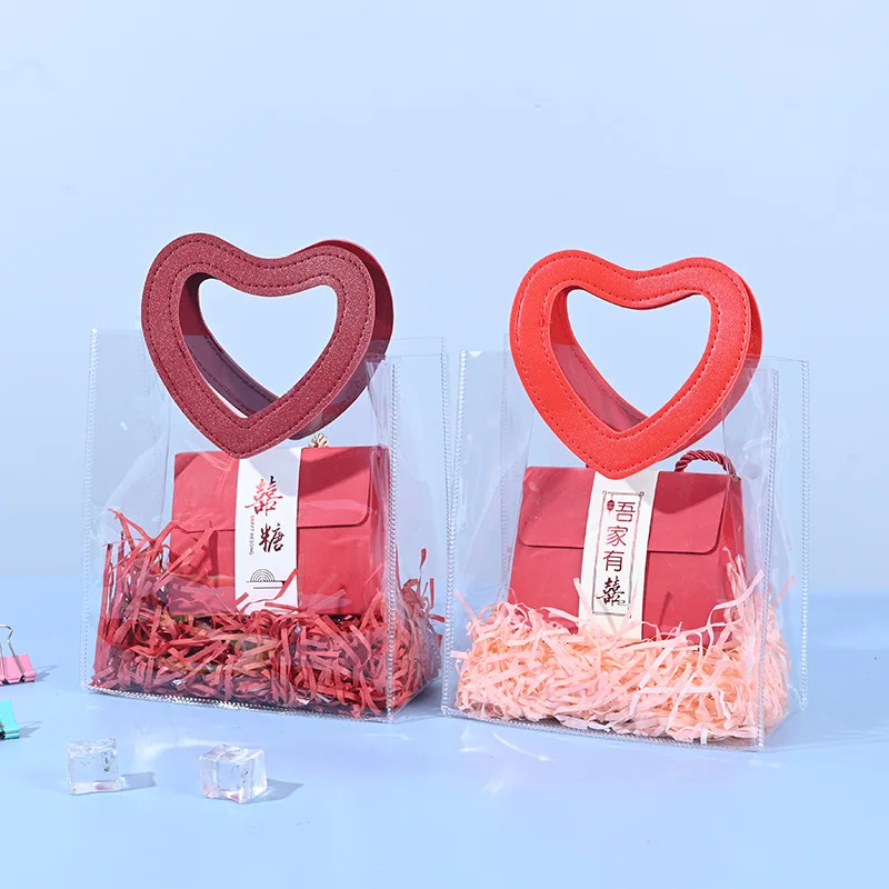 Portable Pvc Tote Bag Practical Wedding Tote Bag Heart Ornament Versatile Candy Gift Bag For Wedding Favor