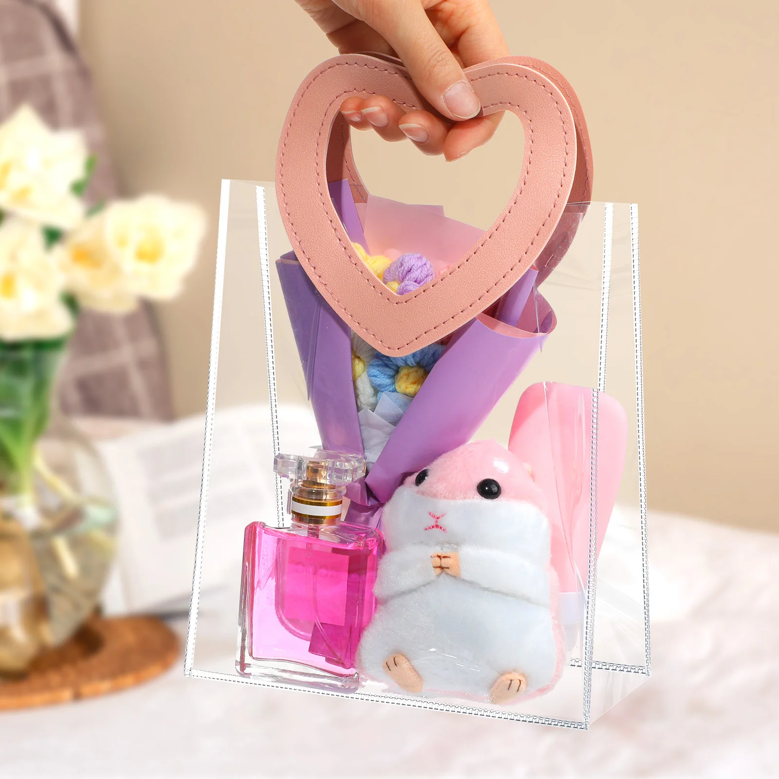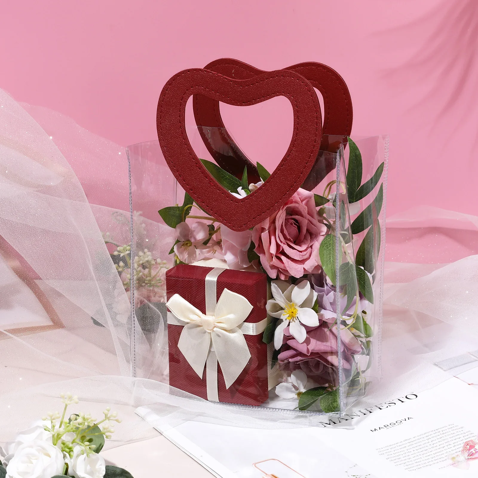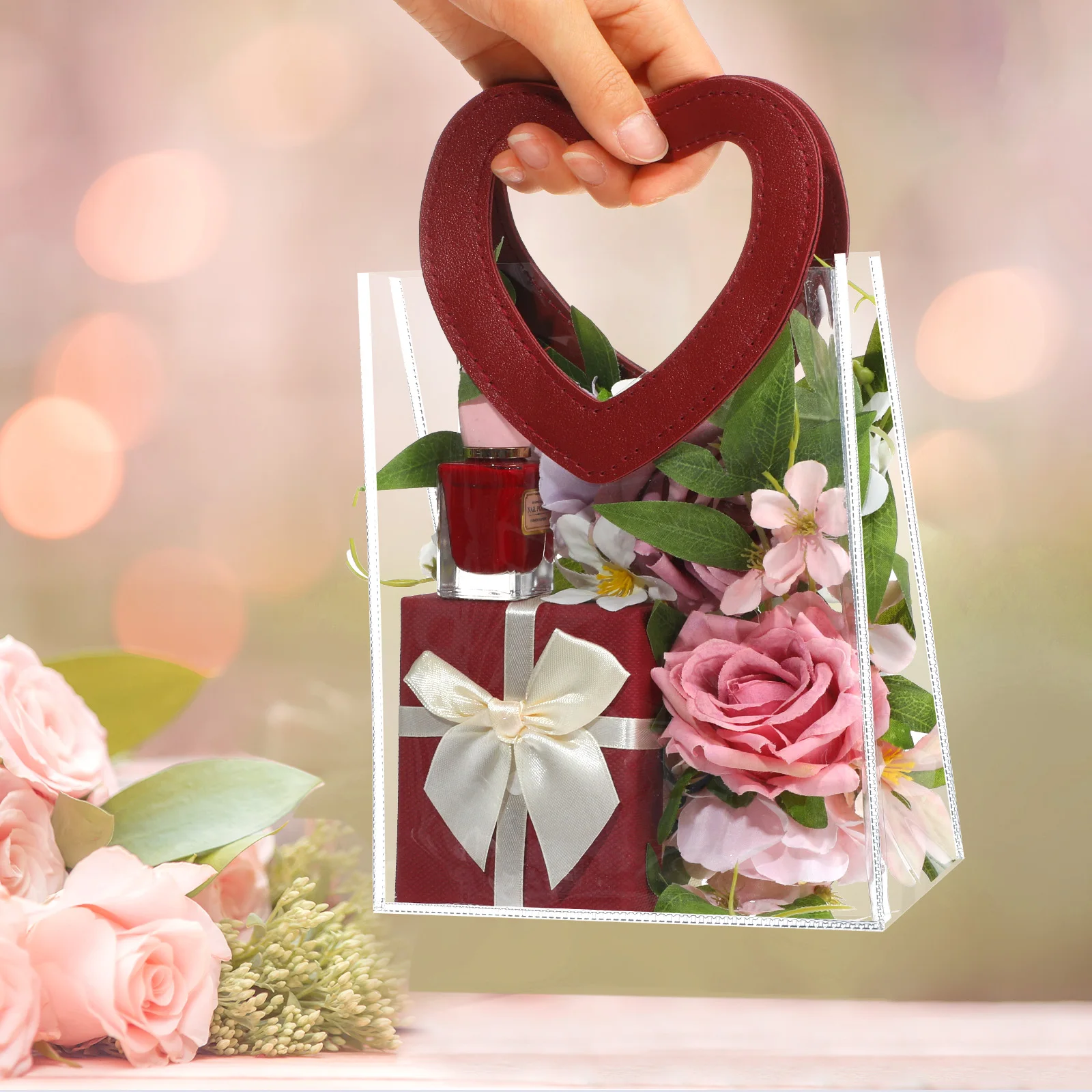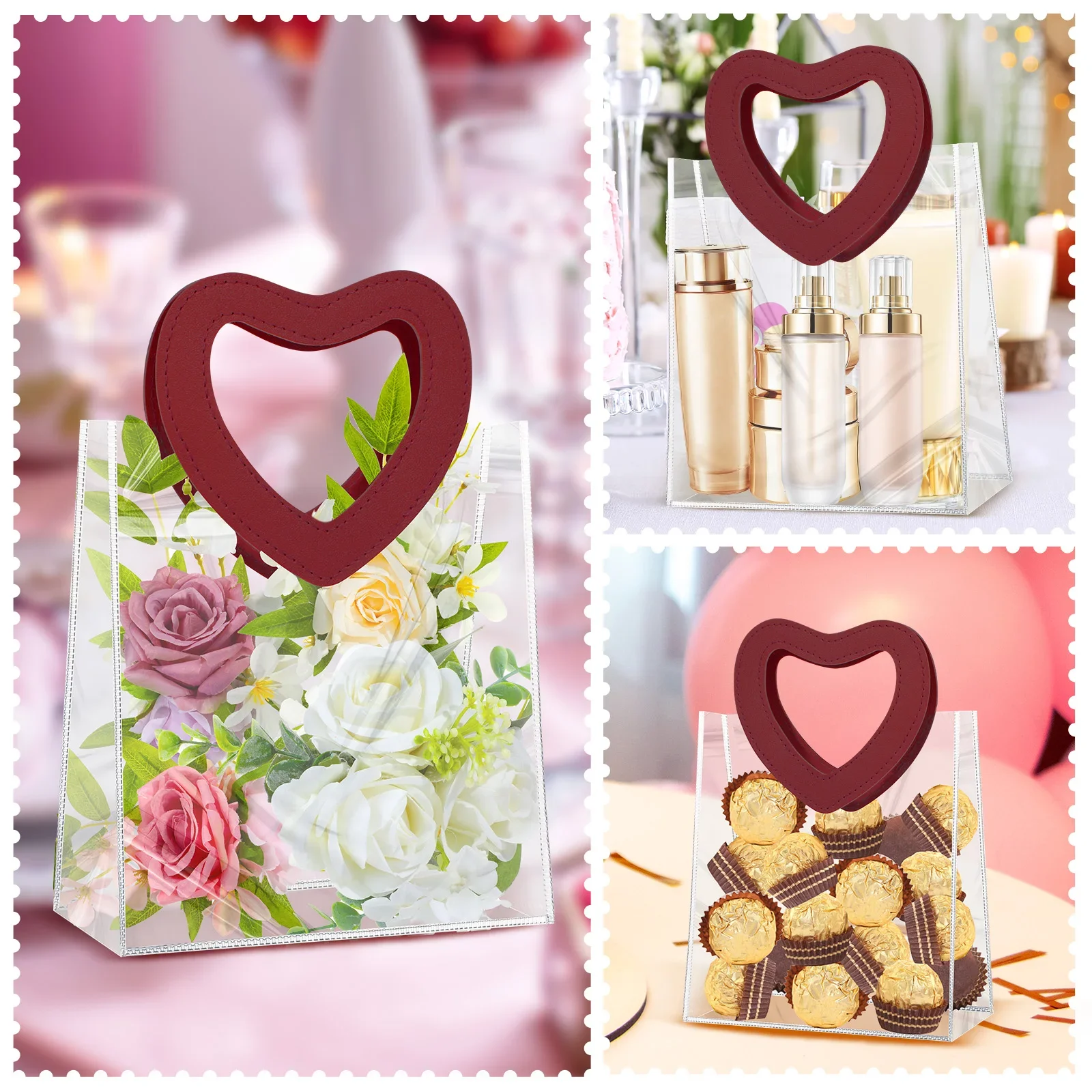 Portable Pvc Tote Bag Practical Wedding Tote Bag Heart Ornament Versatile Candy Gift Bag For Wedding Favor