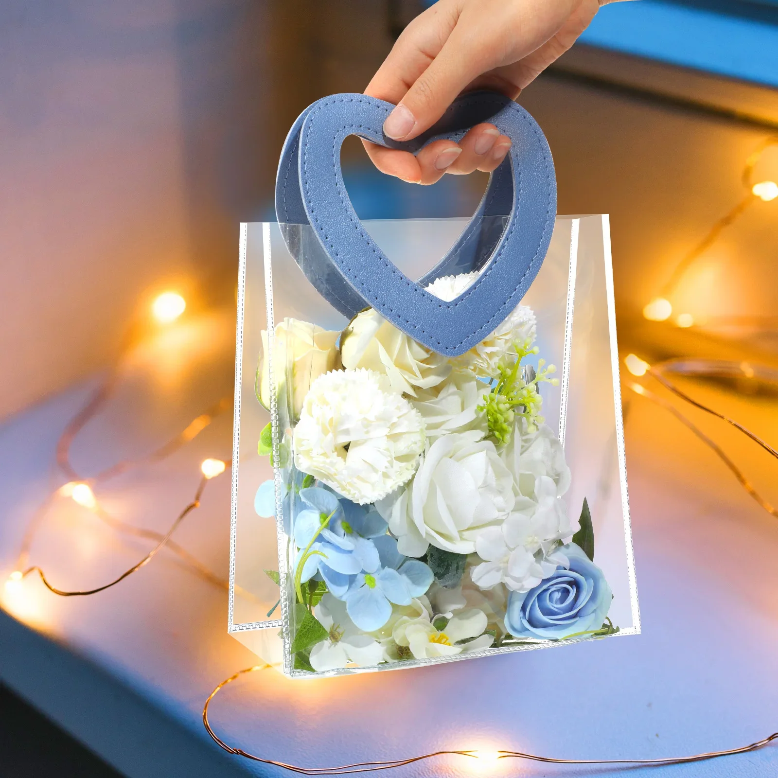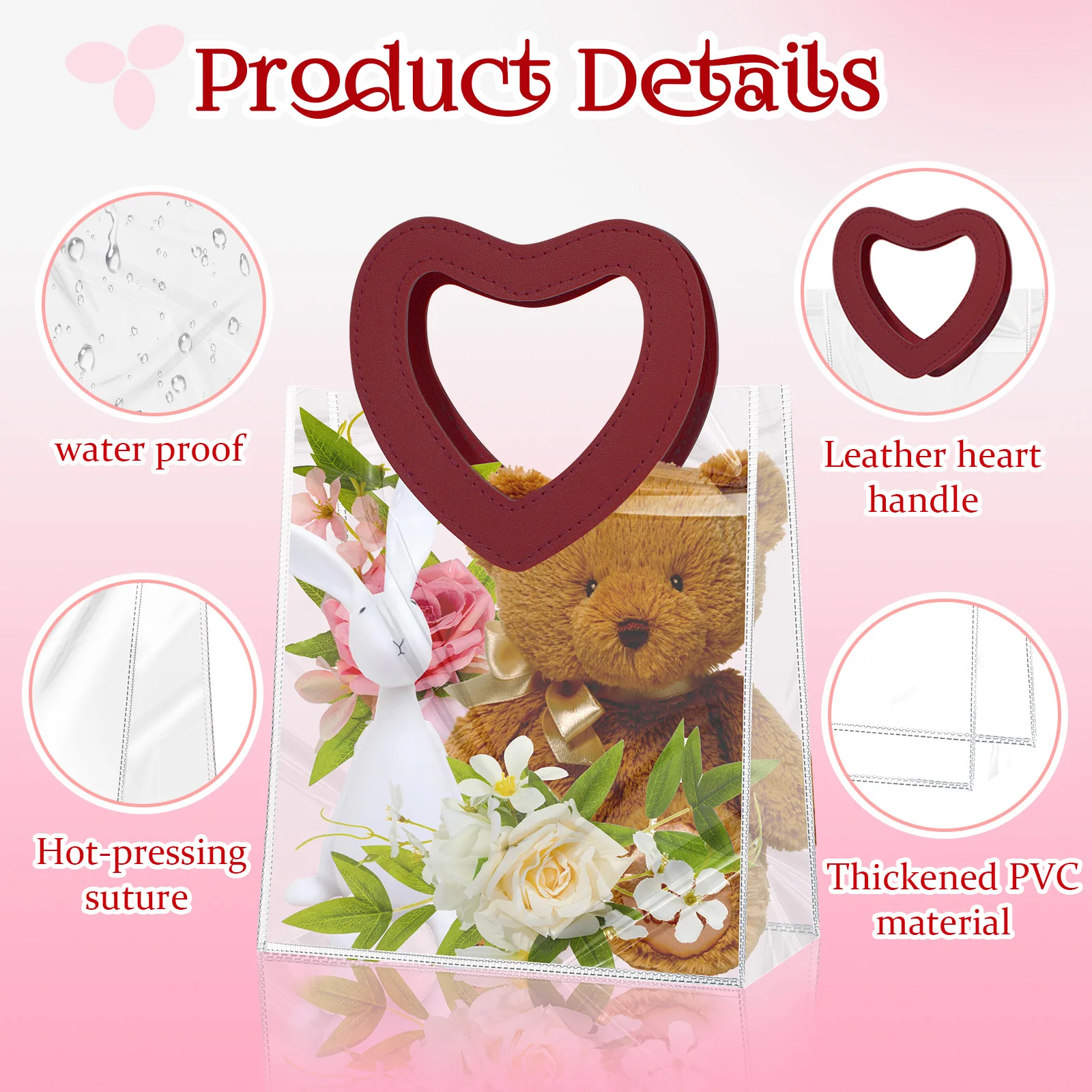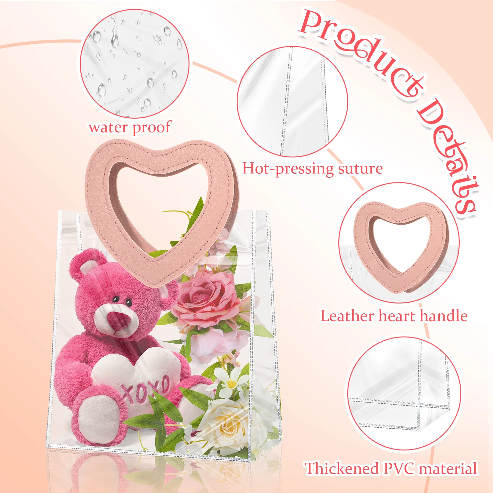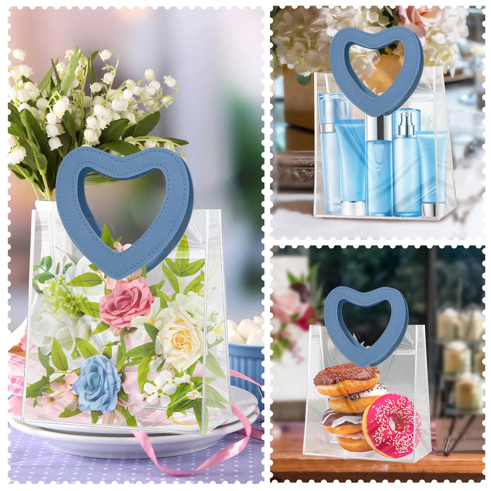 Portable Pvc Tote Bag Practical Wedding Tote Bag Heart Ornament Versatile Candy Gift Bag For Wedding Favor