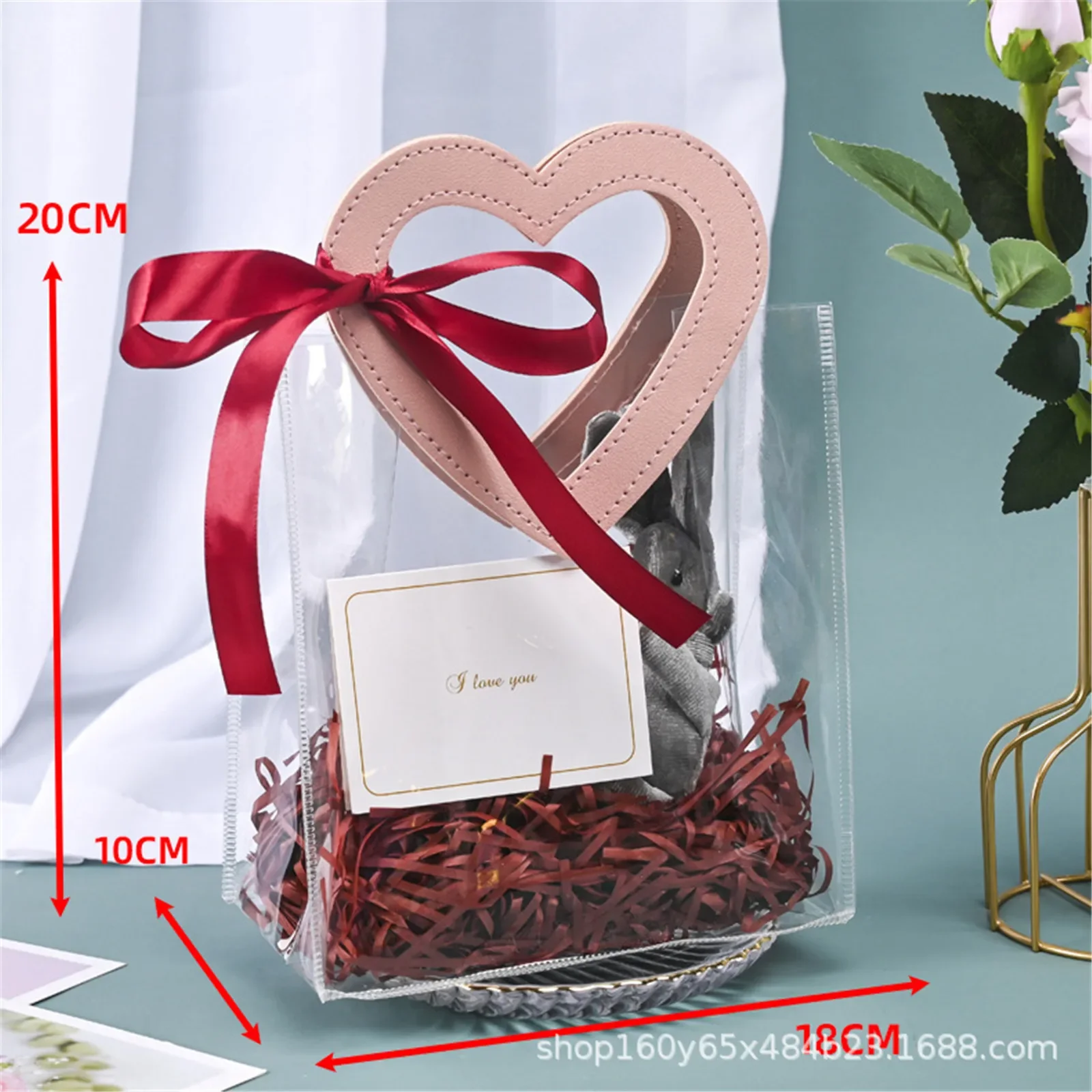Size: 20*18*10 cm, heart-shaped leather handle