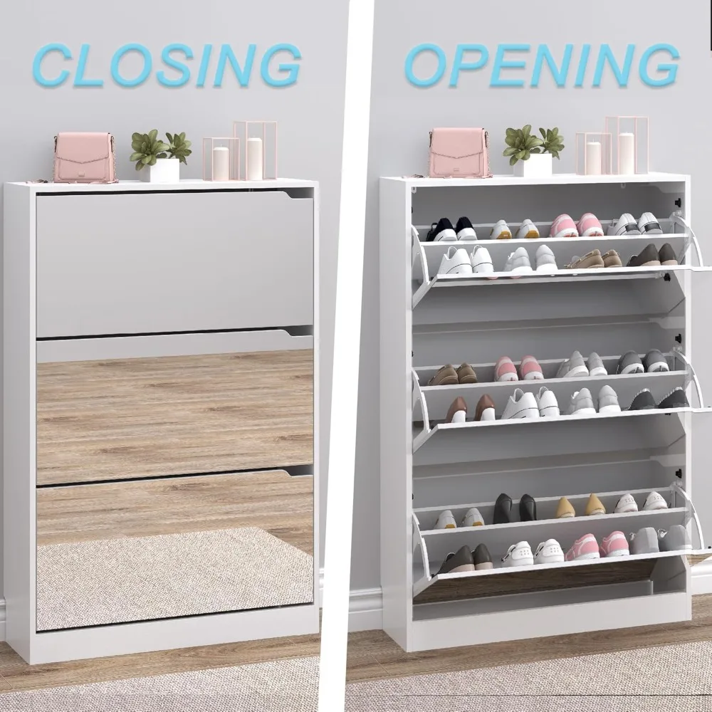 Shoe Cabinet with 3-Flip Mirror Drawers, Freestanding Shoe Rack Organizer with Hidden Handle, Slim Narrow Shoe Storage Cabinet