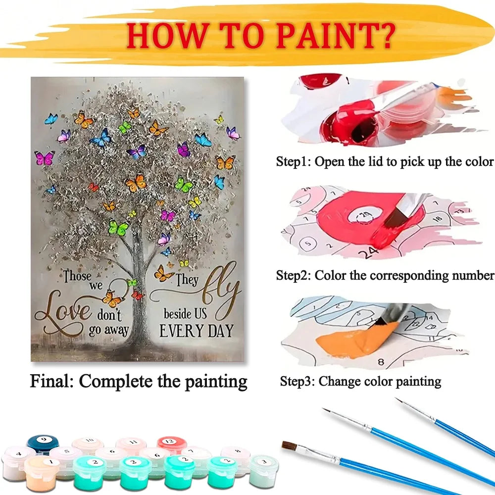 Tree Diy Art Paint By Numbers For Adult Butterfly Craft Kit HandPainted On Canvas Valentines Gift Home Decor
