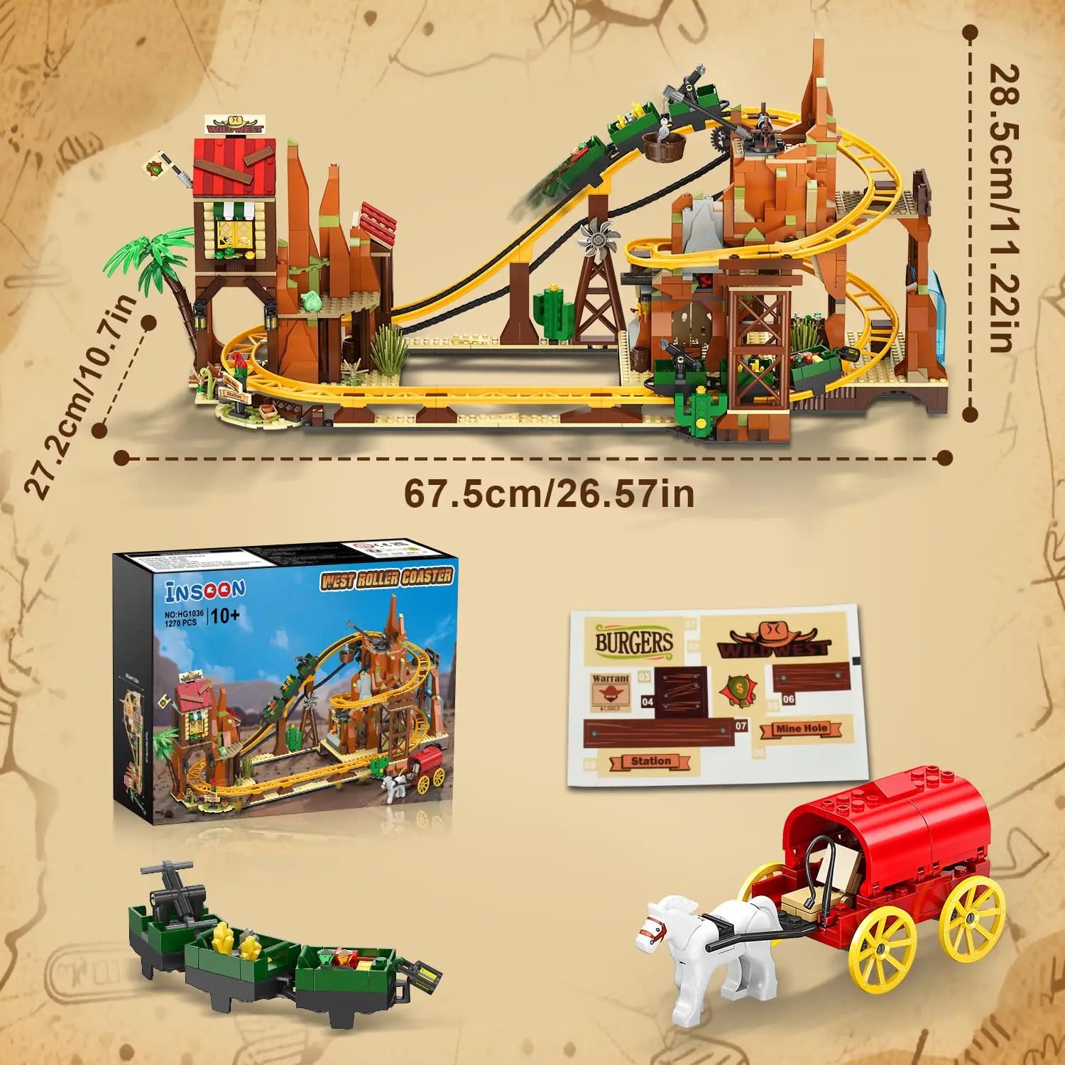 Craft your own frontier roller-coaster adventure with the HOGOKIDS Western Roller Coaster Building Set Mine Train Playset.